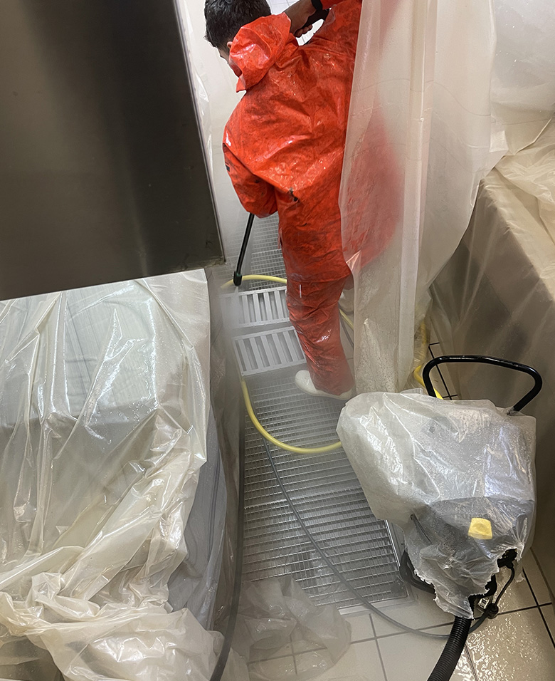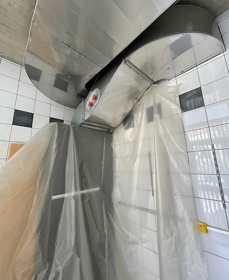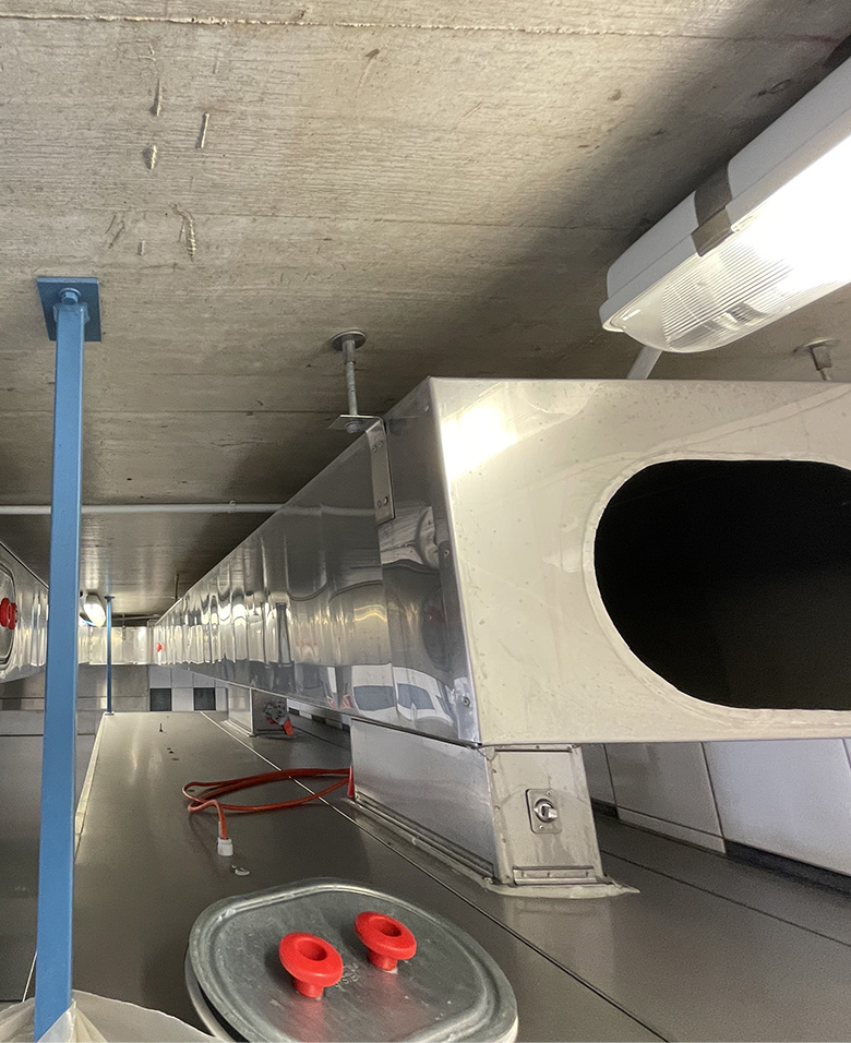 The cleaning protocol is very precise: Inventory with photos of the situation before degreasing, safety of equipment (motors, ovens and all electrical appliances). Then protective covers are installed to protect the equipment from liquids and finally a detailed report of the degreased and cleaned conduits.